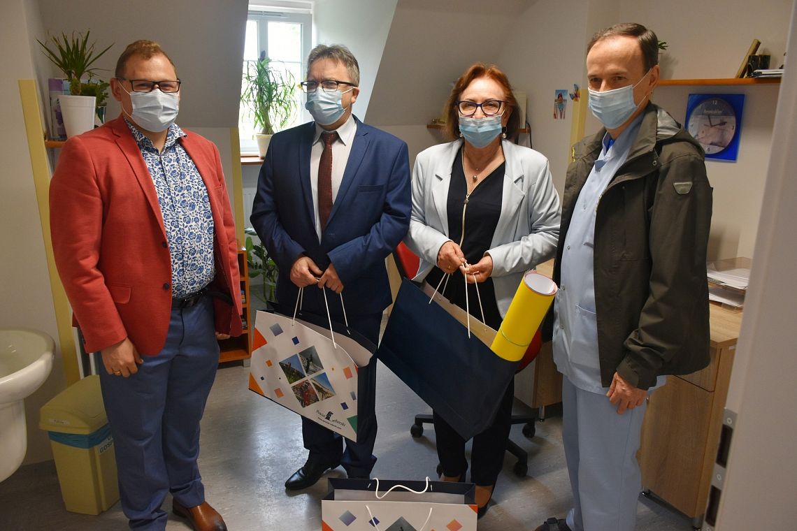 Pandemia wciąż trwa, dlatego upominki, w imieniu małych Pacjentów, zostały odebrane przez Pielęgniarki Oddziałowe. Po wizycie na Oddziałach, Starostowie udali się do Ośrodka Opieki Psychologicznej i Psychoterapeutycznej dla Dzieci i Młodzieży, aby i tam przekazać upominki dla Pacjentów Ośrodka, który dzięki temu wzbogacił się o puzzle, gry planszowe, klocki i materiały do rysowania. Wszystkie podarunki okażą się niezwykle pomocne podczas procesu terapeutycznego.