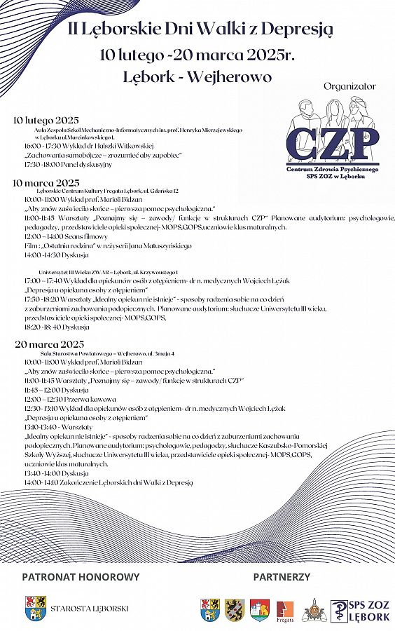 Wstęp wolny – zapraszamy wszystkich mieszkańców powiatu lęborskiego! Niech to będzie okazja do zdobycia cennej wiedzy, refleksji i otwartej rozmowy na temat zdrowia psychicznego.