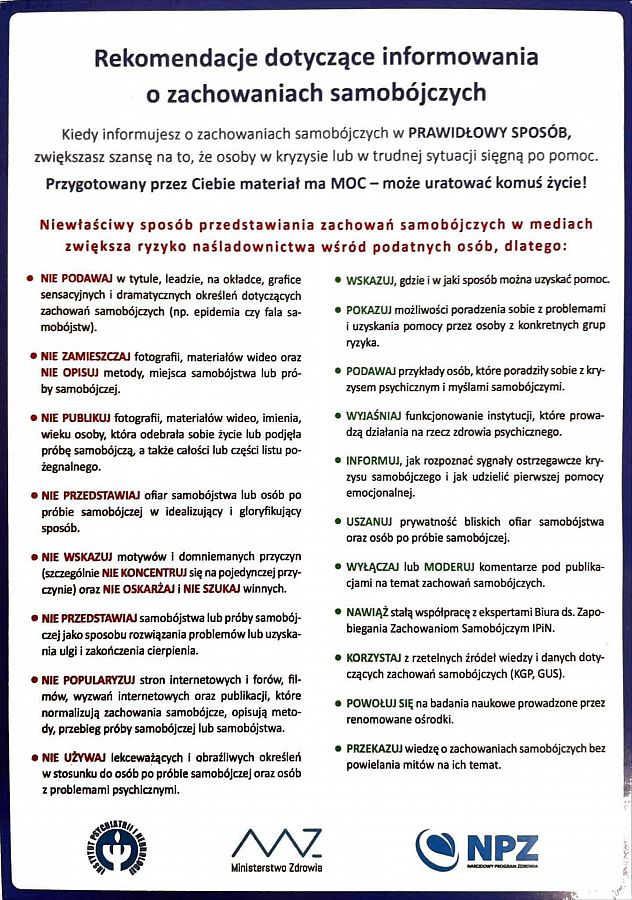 Akcja odbędzie się na terenie parku przy szpitalu w Lęborku oraz na placu przed wejściem do PZP w Wejherowie. Nie zabraknie tego dnia wielu rozmów, zarówno z rodzinami osób po próbach samobójczych, jak i z mieszkańcami w temacie istotnej roli profilaktyki zdrowia psychicznego. Będzie mowa o tym, jak wspierać, pomagać i być uważnym na drugą osobę, jak na nowo odnaleźć sens w życiu i że nikt nie jest sam, choćby sytuacja bywa bardzo ciężka. Będą konsultacje, materiały edukacyjne i solidna dawka wiedzy w temacie zdrowia psychicznego.