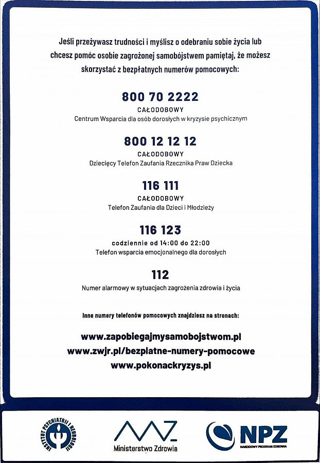 W Światowy Dzień Zapobiegania Samobójstwom Centrum Zdrowia Psychicznego w Lęborku rusza z akcją odbywającą się pod hasłem „STOP Samobójstwom – Życie ma sens”. 11 września we współpracy z Fundacją „Terapia to NIE wstyd” mobilizujemy siły, aby szerzyć świadomość w zakresie rosnących potrzeb związanych ze zdrowiem psychicznym.