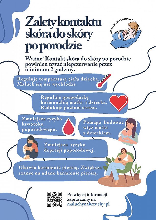 - przebywanie na brzuchu mamy zapewnia dziecku optymalną temperaturę, co redukuje ryzyko wychłodzenia organizmu;