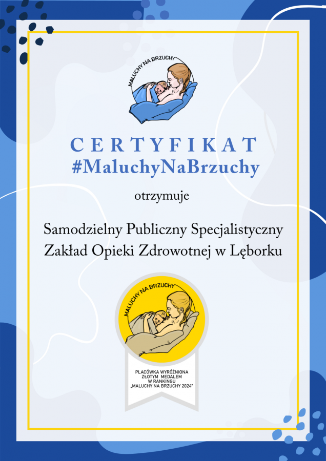 Samodzielny Publiczny Specjalistyczny Zakład Opieki Zdrowotnej w Lęborku został wyróżniony złotym medalem w Rankingu „Maluchy na Brzuchy 2024” za wysoki wskaźnik wsparcia dwugodzinnego i nieprzerwanego kontaktu skóra do skóry po porodzie drogami natury. Jest to część Standardu Organizacyjnego Opieki Okołoporodowej, która w SPS ZOZ jest realizowana na najwyższym poziomie.