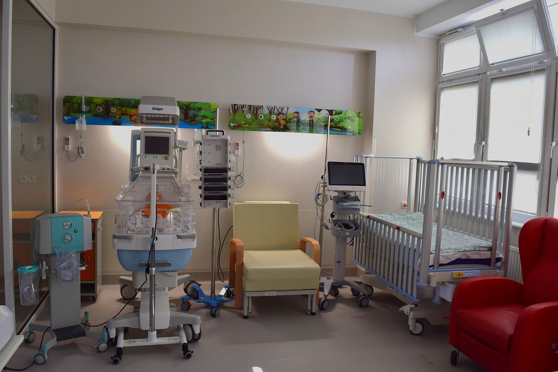 - sala wzmożonego nadzoru, 3-stanowiskowa zawierająca: inkubator hybrydowy, łózko dla dzieci młodszych oraz łóżko dla dzieci starszych.