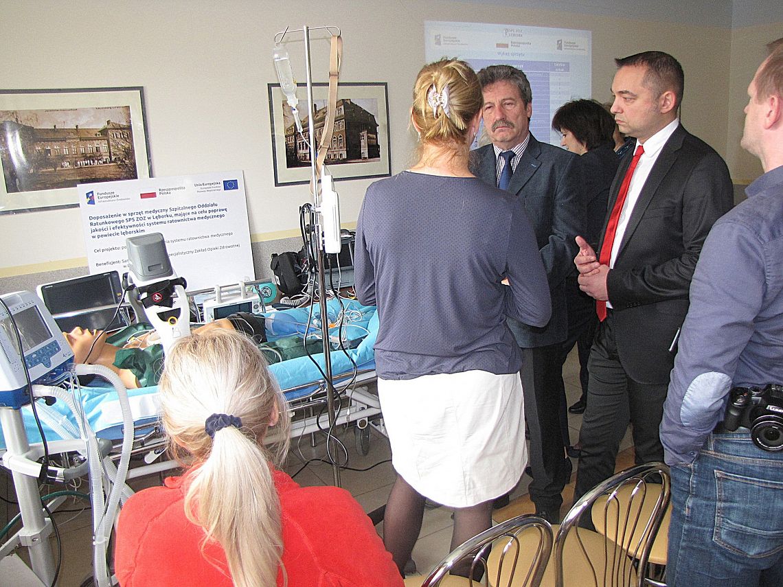 Przybyłych gości przywitał Zastępca Dyrektora ds. Finansowych Mariusz Kaszubowski wraz z Panią Alicją Zajączkowską- Starostą Lęborskim. Następnie Kierownik Szpitalnego Oddziału Ratunkowego- dr Ewa Greczyło, z pomocą Pielęgniarki Oddziałowej Lucyny Piechowskiej, zaprezentowały sprzęt medyczny zakupiony w ramach zakończonego projektu.