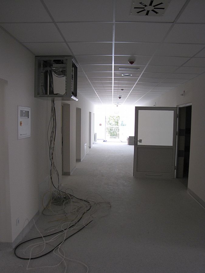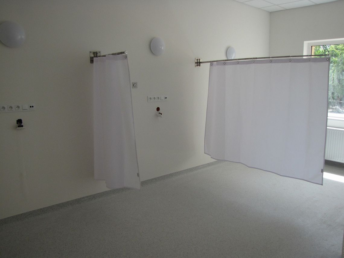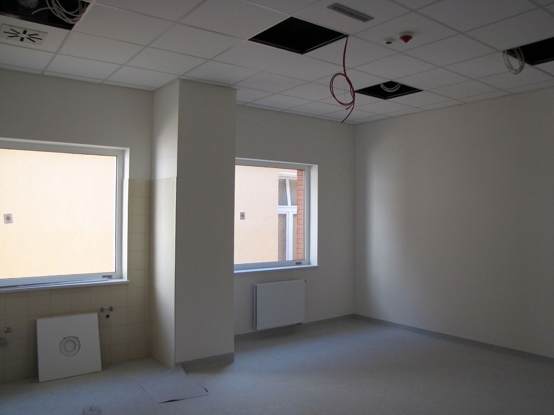 W części nadbudowanej nad SOR, gdzie powstają pomieszczenia dla Oddziału Rehabilitacji Kardiologicznej kończą się obecnie prace związane z instalacjami teletechnicznymi. Zamontowano również teleskopowe systemy zasłon międzyłóżkowych. Wkrótce rozpocznie się sprzątanie i przygotowanie pomieszczeń do wymaganych odbiorów, a w dalszej kolejności instalacja zakupionego w ramach projektu sprzętu medycznego.