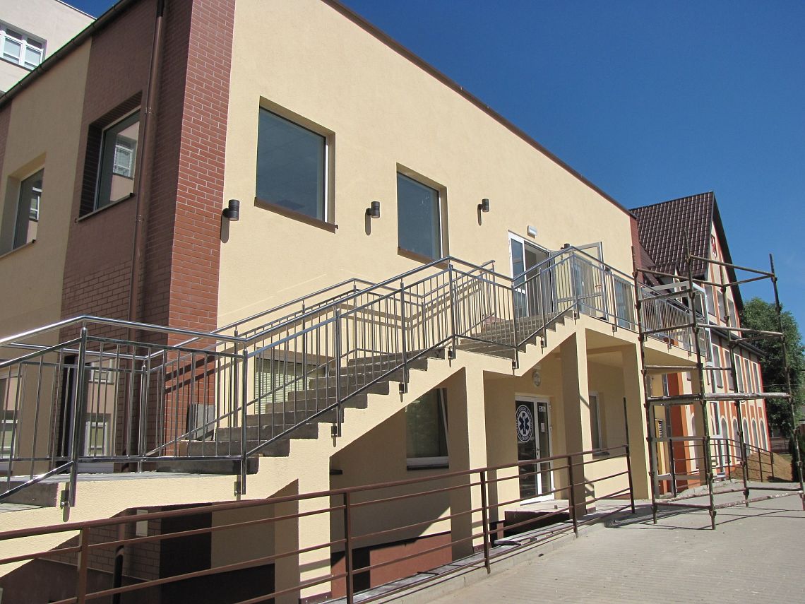W byłym budynku Oddziału Psychiatrycznego, w którym teraz znajdować się będą poradnie, zakończyły się już prace na parterze. Przygotowana jest też konstrukcja do instalacji windy. Z tyłu budynku natomiast dobudowany został podjazd dla osób niepełnosprawnych.